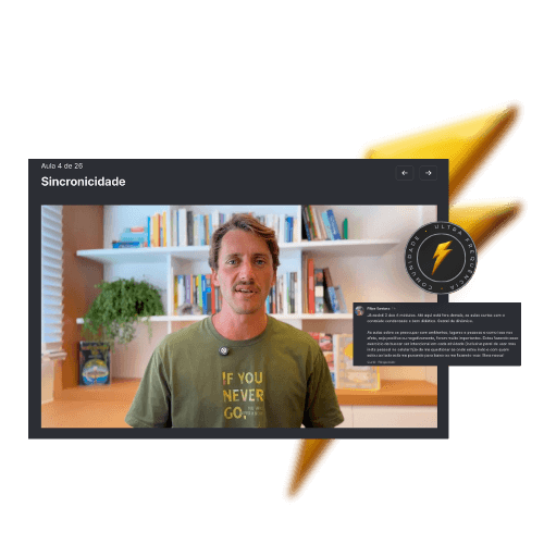 Você recebe orientação direta do Marcos: aulas, insights, explicações profundas e clarezas que cortam ruídos e mostram exatamente o que realmente importa na jornada de elevar sua frequência.